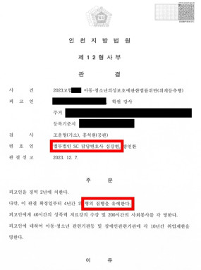 학원 수강생 상대로 한 위계 등 추행사건, 집행유예