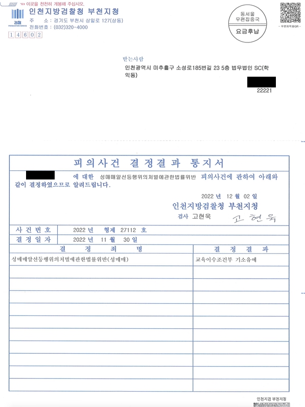 의뢰인은 일명 ‘오피’ 성매매 업소를 3회 방문하였다가, 업주의 장부가 수사기관에 압수되면서 수사가 개시된 사안이었는데, 본인의 직업 특성상 꼭 ‘기소유예’를 받아야 하는 상황이었습니다.