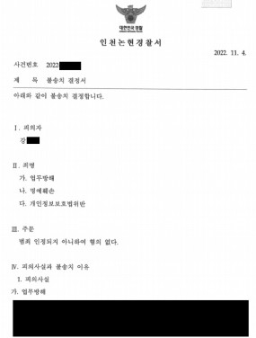 상가관리단의 업무방해, 명예훼손, 개인정보보호법위반 고소사건, 혐의없음 불송치