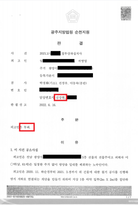 1. 사건의 개요 의뢰인(피고소인)은 상가관리인으로부터 업무방해, 명예훼손, 개인정보보호법위반으로 고소를 당하였으나, 고소인의 억지 주장을 규명하여 혐의없음 불송치 결정을 이끌어 냄 2. 적용법조문 형법 제314조(업무방해) ①허위사실을 유포하거나 기타 위계로써 또는 위력으로써 사람의 업무를 방해한 자는 5년 이하의 징역 또는 1천50…