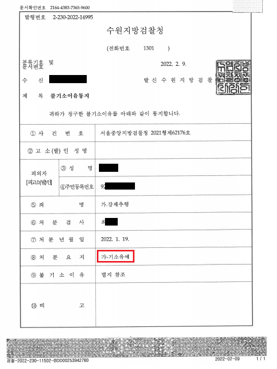 결국 검사로부터 기소유예 처분을 받았습니다.