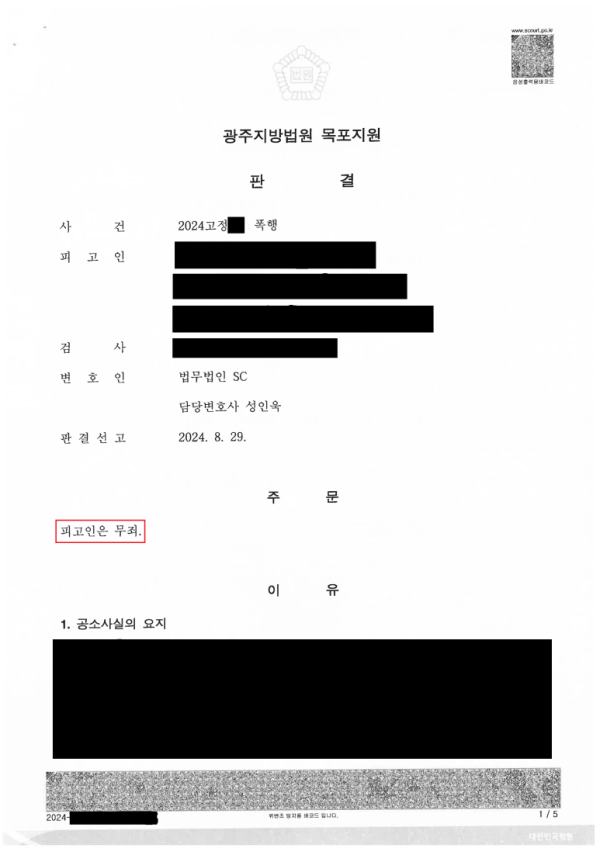 그 결과 법원에서는 성인욱 변호사의 주장을 그대로  받아들여 무죄를 선고하였고 의뢰인은 원하시는 대로 범죄 전력을 전혀 남기지 않고 사건을 마무리 할 수 있었습니다.
