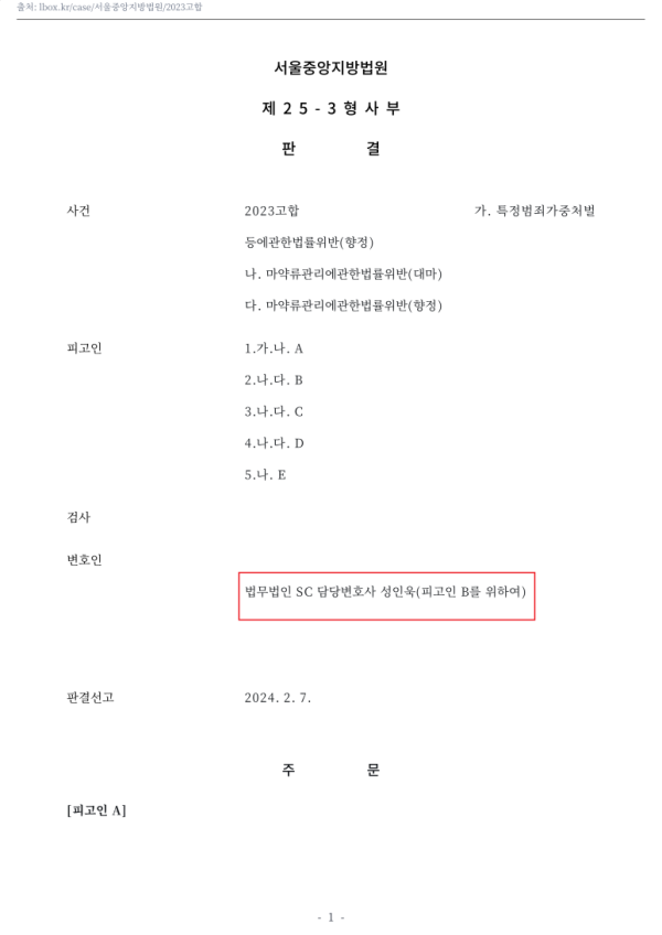 이후 의뢰인이 자신과 가족의 삶을 좀먹는 마약 범죄를 다시는 저지르지 않겠다는 의지를 강력히 보이고 있는 점을 강조하는 한편, 이 사건에서도 판매를 업으로 한 것이 아니라 하던 일이 잘 안 풀리던 중 가족에게 더 이상 경제적으로 부담을 줄 수 없다는 생각에 지인들에게 몇번 소지하고 있던 마약류를 소소하게 판매한 것인 점, 이제까지 범죄전력이 없었고 가족들이 의뢰인의 갱생을 위해 구체적인 방법을 마련하고 있는 점 등을 의견서와 정상자료로 충실히 피력했습니다.